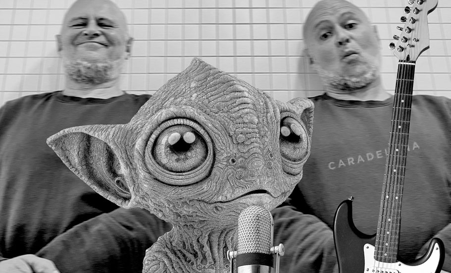 Today I would like to introduce you to my virtual, extraterrestrial singer Caradeluna, who incorporates his interesting observations on planet Earth into his song lyrics from a safe distance. My imaginary lead singer has flown away on a journey from his home planet Fantastica and accidentally comes across planet Earth and the human life form that reigns there, which he observes curiously from a safe distance from his shuttle..